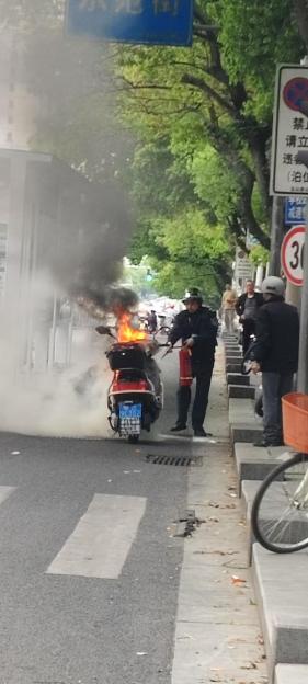 4月7日下午2點(diǎn)35分,一輛行駛中的電瓶車在玉山金山角路口突然發(fā)生自燃,濃煙四起并伴有明火。車主緊急停靠在中國建設(shè)銀行玉山支行門口,情況一度十分危急。現(xiàn)場火焰猛烈燃燒,黑煙滾滾,引起周圍行人和商戶的關(guān)注。