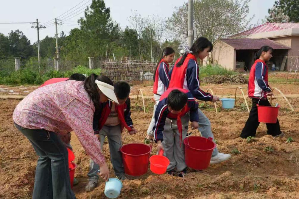 近日,余干縣白馬橋鄉中心小學的勞動課上,孩子們齊聚校園菜園開啟了一場歡樂的澆水之旅。孩子們提著水桶,兩兩一組穿梭在菜畦間,清澈的水流精準地潤澤每一株菜苗。有的孩子專注盯著水流走向,生怕沖倒幼苗;有的邊澆邊交流心得,眼中滿是對蔬菜成長的期待。
