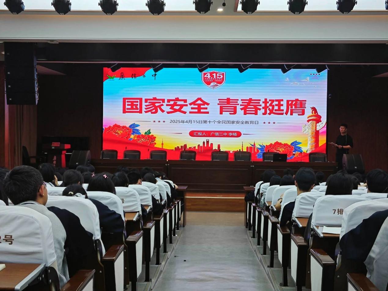 在第10個(gè)全民國(guó)家安全教育日期間,廣信二中德育處和團(tuán)委圍繞“國(guó)家安全,青年擔(dān)當(dāng)”主題,組織了豐富多彩的活動(dòng),引導(dǎo)同學(xué)們?cè)鰪?qiáng)國(guó)家安全意識(shí),明白維護(hù)國(guó)家安全是每個(gè)人的責(zé)任。