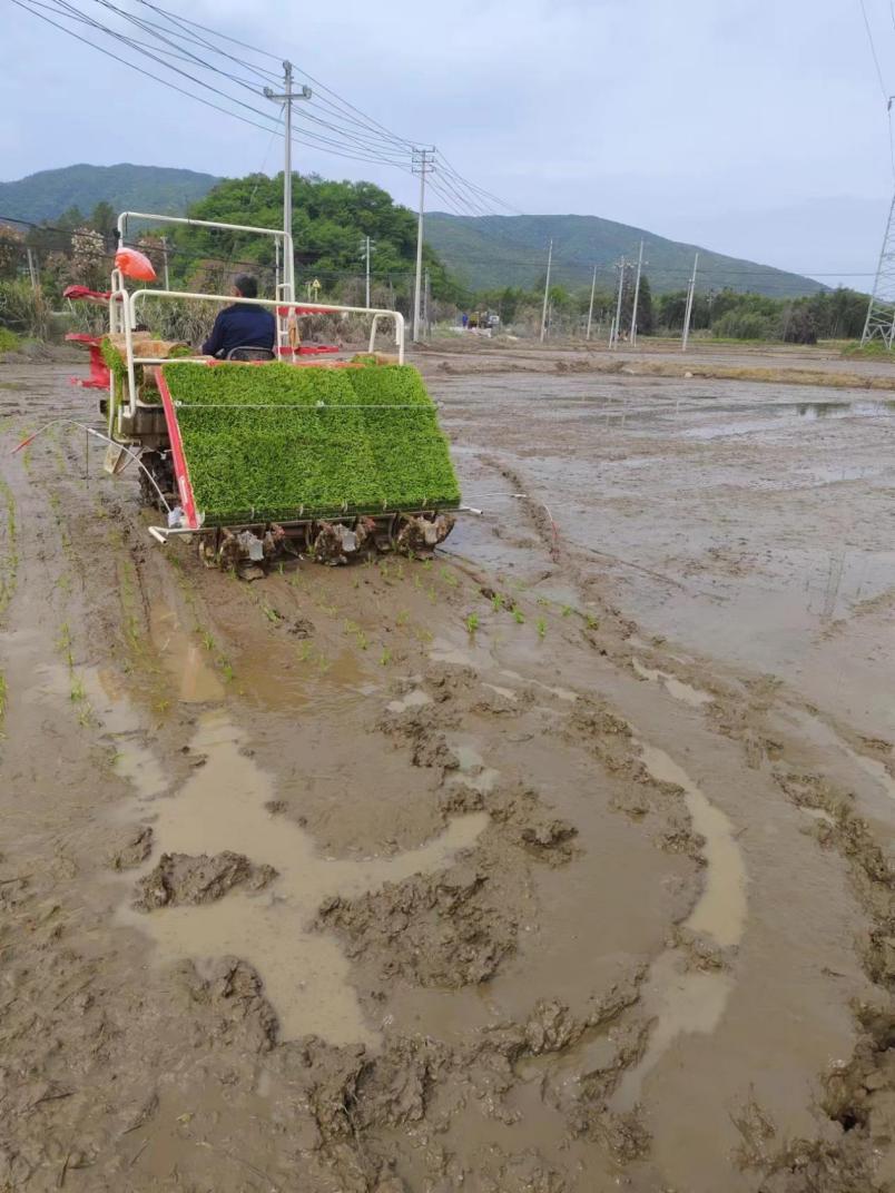 在浪灣村稻田里,人大代表們協同農機合作社,調度多臺高速插秧機穿梭作業。隨著滾輪飛轉,一行行秧苗整齊入泥,田間迅速鋪展綠色“地毯”。與此同時,無人機飛播隊在代表們的統籌下同步作業,低空盤旋間將種子精準播撒,科技力量讓春耕“馬力全開”。