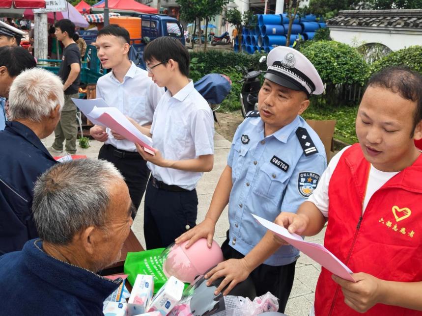 活動現(xiàn)場,交警中隊民警化身交通安全宣講員,以轄區(qū)真實發(fā)生的典型事故案例為切入點,采取街頭擺攤、懸掛橫幅、發(fā)放交通安全宣傳資料、交通知識有獎問答、發(fā)放頭盔等方式,向趕集群眾面對面講解酒駕醉駕、超員超載、非法營運、無證駕駛、騎乘摩托車及電動車不佩戴安全頭盔、農(nóng)用車違法載人和違法安裝遮陽傘等交通違法行為帶來的危害,警醒轄區(qū)群眾要從中吸取教訓(xùn),嚴(yán)格遵守交通法律法規(guī)。同時,宣傳民警集中向老年人和少年兒童普及交通安全常識與交通安全法規(guī),積極引導(dǎo)“一老一小”群體增強自身保護意識,提高自我防范能力。