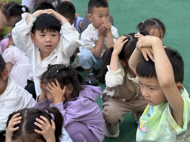 下午3點20分,全園師生進行了防震應急演練。演練前,教師再次講解“避震黃金法則”,示范“蹲下、掩護、穩住”的標準動作。警報響起后,孩子們迅速反應。