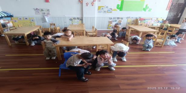 各班教師以“防災減災”為核心,結合幼兒認知特點,設計了趣味與實踐并重的主題教育活動。小班通過動畫短片和角色扮演,讓幼兒直觀感受地震發生時的場景,學習“躲到桌子下”的避險動作;中班以“安全標志大闖關”游戲為主線,引導幼兒識別消防栓、應急出口等圖標;大班則圍繞“災害逃生計劃”展開討論,分組繪制家庭逃生路線圖。活動中,孩子們用稚嫩的語言分享“遇到火災要捂住鼻子跑”“地震時要保護好頭”,稚趣的回答中透露出對安全知識的初步理解。