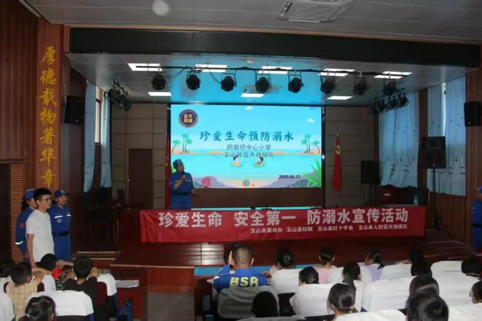 為增強學生防溺水安全意識,筑牢生命安全防線,6月5日下午,玉山縣藍天救援隊走進四股橋中心小學,開展“珍愛生命,預防溺水”主題安全宣講活動。