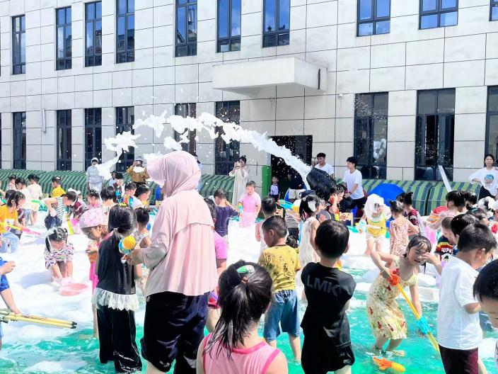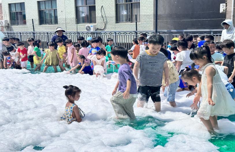 這場別開生面的活動以游戲為載體,將體能鍛煉、科學探索、社交互動巧妙融合,孩子們在清涼暢快的泡沫世界中肆意嬉戲,不僅收獲了夏日的歡樂與清涼,更在趣味游戲中實現了體能、認知與社交能力的全面發展,讓每一個成長瞬間都浸潤在寓教于樂的美好氛圍中。(顏穎穎 湯雨莎)