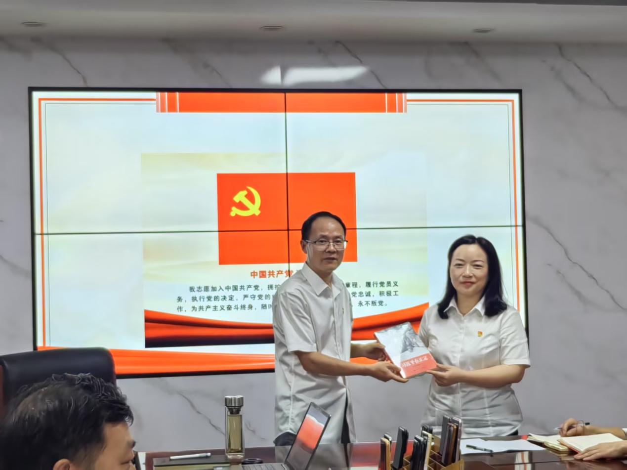 在組織生活環(huán)節(jié),黨支部為入黨的同志舉辦了莊重的“政治生日”儀式。面對鮮紅黨旗,兩位黨員再次重溫入黨誓詞,字字鏗鏘表初心;回顧入黨歷程,深情講述成長感悟,傳遞對黨的赤誠之心。支部書記為其頒發(fā)“政治生日”賀卡,寄語他們永葆黨員本色,在工作中充分發(fā)揮先鋒模范作用。