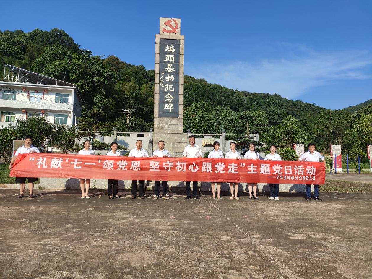 “我志愿加入中國共產黨,擁護黨的綱領……”鏗鏘有力的入黨宣誓聲音響徹了裴梅鎮富林塢頭暴動紀念館。6月30日下午,萬年郵政黨支部在裴梅鎮富林塢頭暴動紀念館開展了“禮獻‘七一’頌黨恩,堅守初心跟黨走”主題黨日活動。