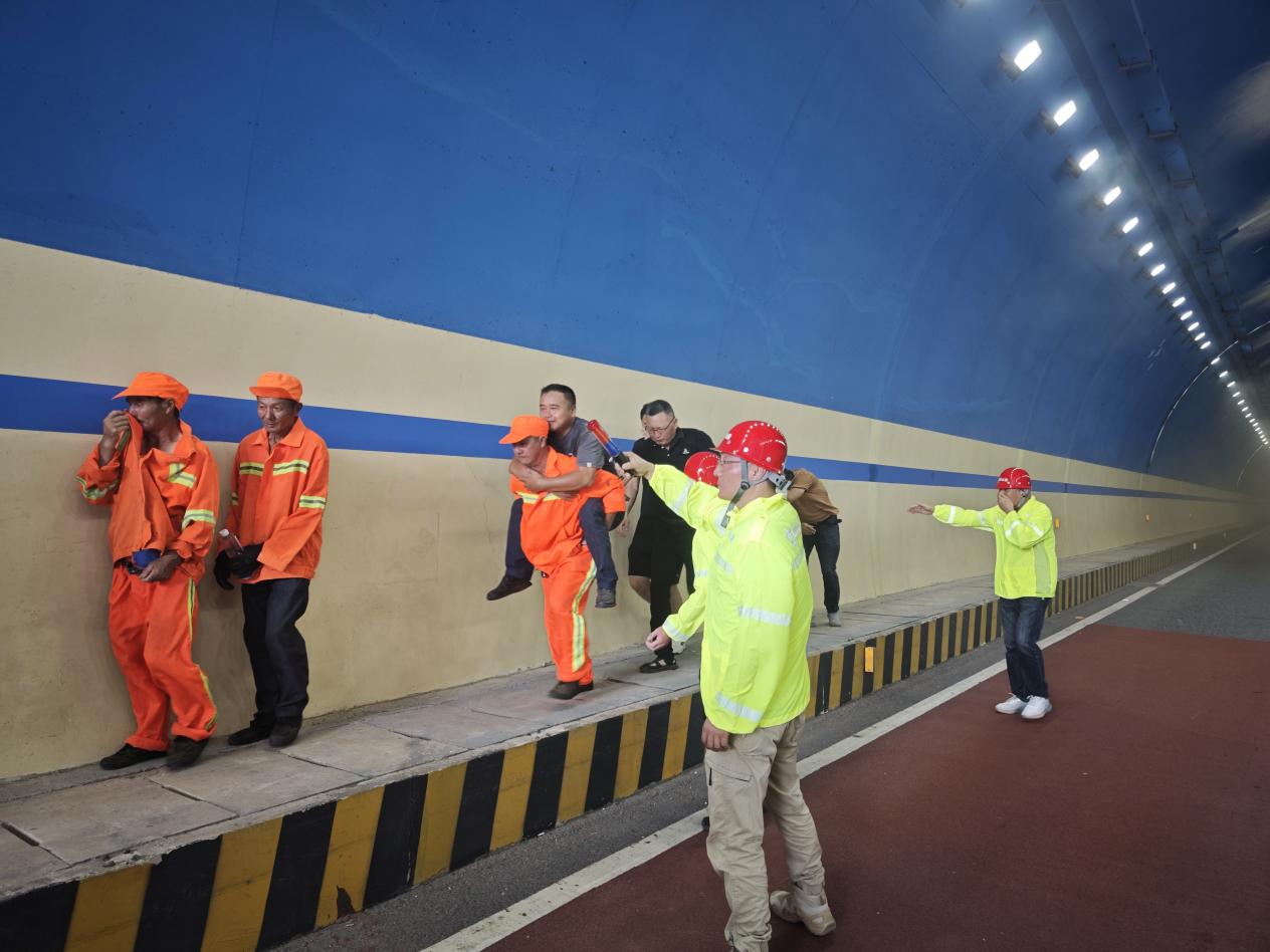 在G353時光隧道現場,隨著該中心應急救援演練總指揮一聲令下,演練正式開始。此次演練模擬場景為時光隧道左洞內,一輛小車突發自燃事故。接到險情報告后,該中心立即啟動應急預案。警戒組迅速按照指令在隧道相關區域設置警示標志和路障,對周邊道路進行交通管制,阻止無關車輛和人員進入危險區域。義務消防隊第一時間趕赴現場,組織人員疏散并利用隧道內消防設施進行初期火災撲救;同時設置隔離區域,引導車輛人員安全撤離。整個演練過程緊張有序,各環節銜接緊密。