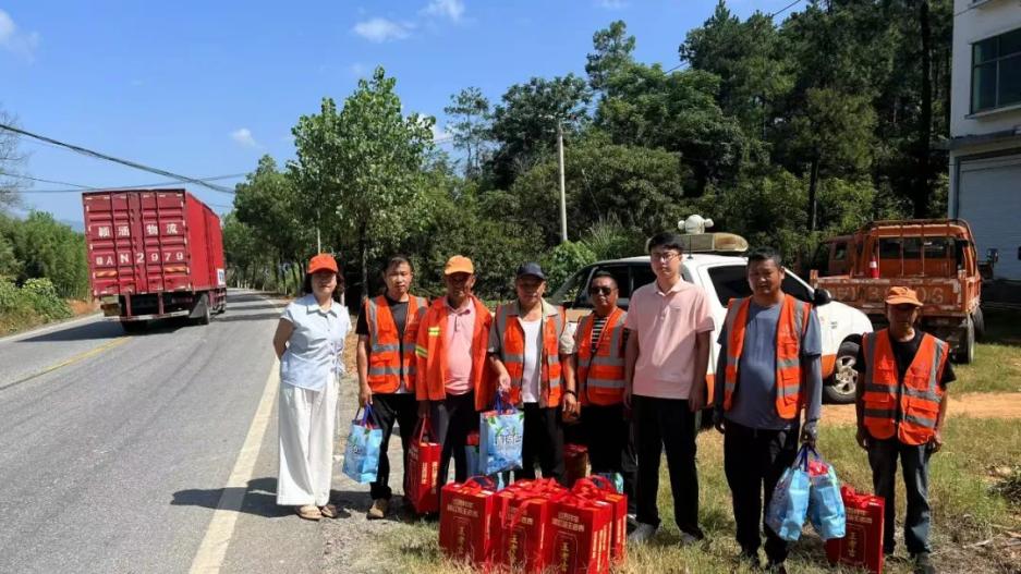 慰問組一行來到G353國道寧福線路段養護現場,為正在作業的養護工人送上防暑降溫藥品、清涼飲品等物資。其間,慰問組與工人們親切交流,詳細詢問了他們的日常工作強度、作息時間安排等情況。慰問組反復叮囑道:“務必科學合理地安排作業時間,嚴格避開正午的高溫時段,切實做好各項防暑降溫措施,確保每一位工人的人身安全。” 同時,慰問組對養護工人在炎炎酷暑中堅守崗位、默默奉獻的精神表達了衷心的感謝和崇高的敬意。