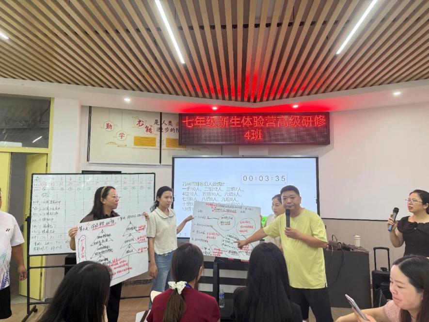 研學的最終目的是學以致用。學習尾聲,廣豐區研學團隊按校分組,結合幾天來的所學所思及各自學校的校情、學情展開頭腦風暴,群策群力,制定出具有校本特色的“新生體驗營”初步策劃方案,力求將學到的經驗真正運用到實際教學中。