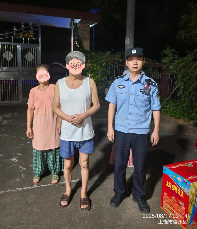 8月17日凌晨1時許,信州區秦峰派出所接到轄區熱心群眾報警:在某三岔路口發現一名行為異常的老人,疑似迷路,正焦急地在原地徘徊。接警后,值班民警迅速驅車趕至現場。面對民警的詢問,老人不僅無法說清家庭住址,甚至連自己的姓名也難以記起。考慮到深夜氣溫較低且老人情緒激動,民警先將其帶回派出所悉心照料。
