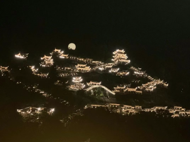 山谷點亮了燈火,滿眼星河璀璨,燈火映襯山崖、溪河、屋宇、民宿、溪橋,把奇幻靈動、人文與自然交織的感觀帶給前來打卡的萬千游人,仿佛人間仙境。