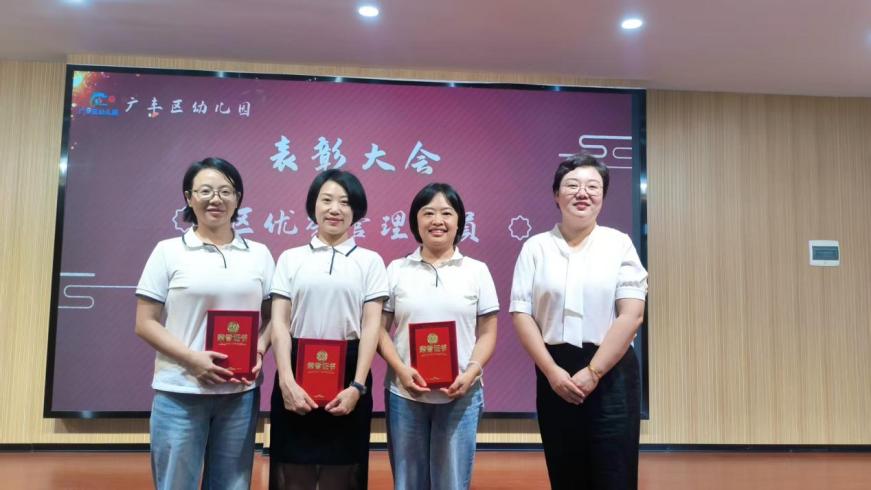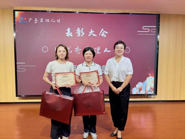 隨后,會議宣讀了2024-2025學年度區優秀管理人員、區師德師風標兵、區優秀班主任、區優秀教師、園優秀管理人員、園優秀教師及園優秀工作人員表彰人員名單,園長為優秀教育工作者頒發榮譽證書并合影留念,鼓勵大家珍惜榮譽、再接再厲。