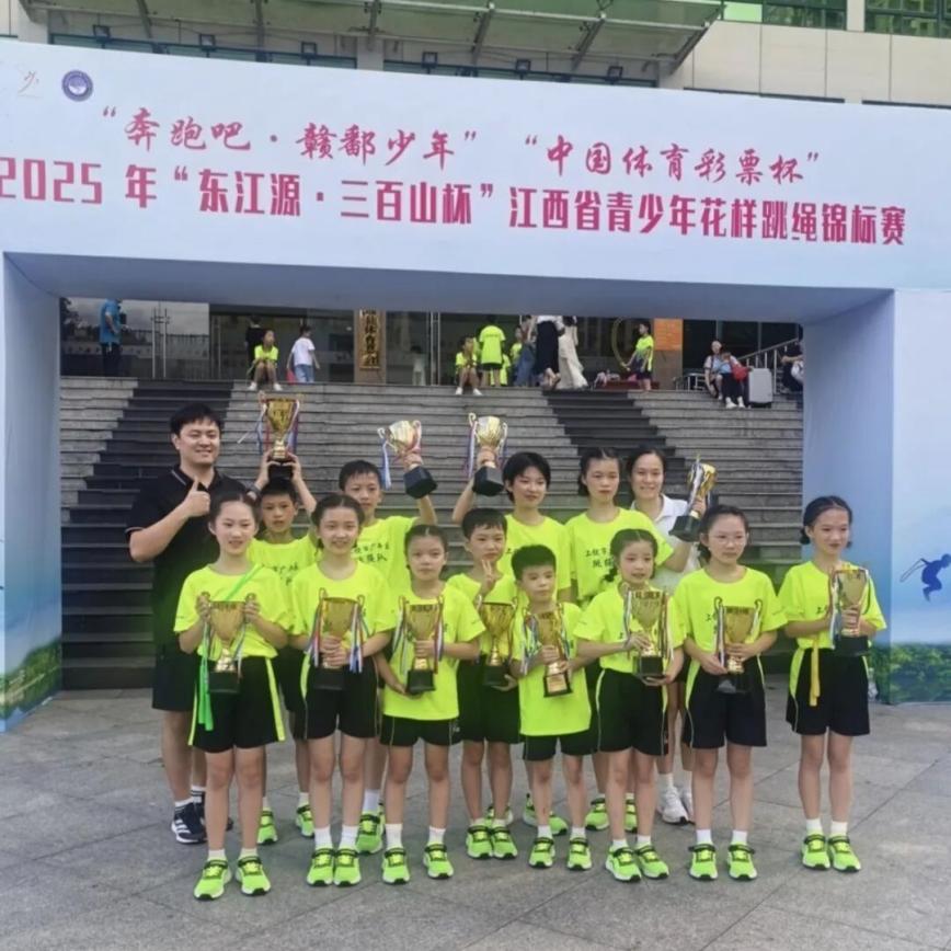 2025年江西省青少年花樣跳繩錦標賽于9月19日-21日在贛州市安遠縣舉行,全省共有70多支參賽隊伍1000多名運動員參賽,由廣豐區永豐小學牽頭選送的22名運動員參加比賽,斬獲14金18銀11銅,并榮獲團體總分第一名。