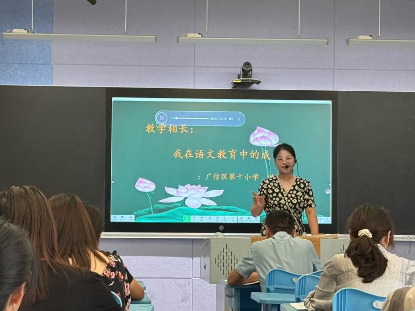 活動中,該校教師以“我在語文教育中成長”為主題進行分享。她結合自身教學實踐提出,語文課堂應是引導學生觸摸歷史溫度、感受文字力量的窗口,旨在幫助學生從“讀懂”走向“會表達”,將知識內化為表達的底氣和共情的能力。