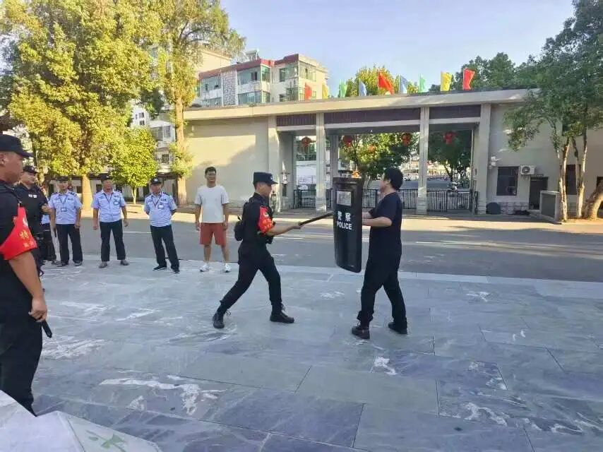 專題講座后,婺源中學聯合巡特警大隊隨即開展“最小應急單元”防暴演練培訓,重點面向學校安保人員。培訓中,首先對防暴盾牌、鋼叉、橡膠棍等常用防爆器械的規范使用方法進行細致講解與實操示范,確保安保人員熟練掌握器械操作要點;隨后,結合校園可能發生的突發暴力場景,設定模擬應急情境,特警隊員與安保人員協同開展實戰演練,全程模擬“發現險情-快速響應-器械聯動-控制現場”等應急處置流程,進一步強化安保人員的應急反應能力與協同處置能力,為校園安全筑起“第一道防線”。(胡桂苗)