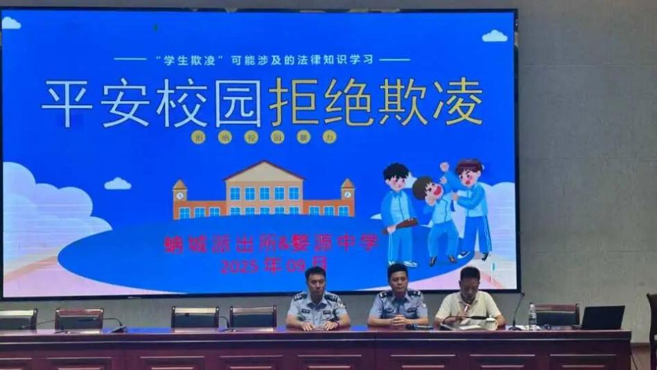 學校法治副校長、蚺城派出所民警開展專題宣講,內容聚焦兩大核心維度:其一,圍繞“拒絕校園欺凌”主題,民警通過案例剖析,詳細界定校園欺凌的具體行為表現,并逐一明確不同欺凌行為對應的違法類型,讓學生清晰認知“何為不可為”,切實增強知法、懂法、守法意識;其二,針對“正確使用網絡”,洪勃民警直面網絡沉迷、不良信息誘導等未成年人網絡安全風險,重點強調提升媒介素養的必要性,引導學生樹立健康上網觀念,合理利用網絡資源。