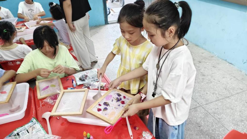 活動現場,孩子們在童伴媽媽和志愿者的帶領下,認真學習古法造紙的工藝流程。從紙漿調制、抄紙、壓水到晾曬,每個環節都讓孩子們大開眼界。在抄紙體驗環節,孩子們小心翼翼地將造紙框浸入紙漿池中,輕輕晃動,讓纖維均勻分布,再緩緩提起,見證一張紙的誕生過程。