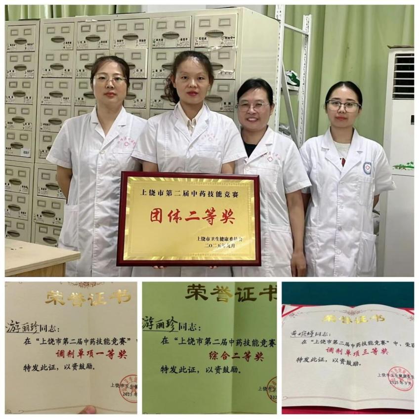 為進一步提升上饒市中藥人員技能,充分發揮中醫藥特色,推動全市中藥人員隊伍建設和中醫藥發展,9月27日,由上饒市衛生健康委員會主辦的上饒市第二屆中藥技能大賽成功舉辦。全市各縣區各級醫療機構的藥學專業選手參加,橫峰縣中醫院藥劑科派出參賽隊伍榮獲團體二等獎,單項個人一等獎、三等獎,單項個人綜合二等獎。