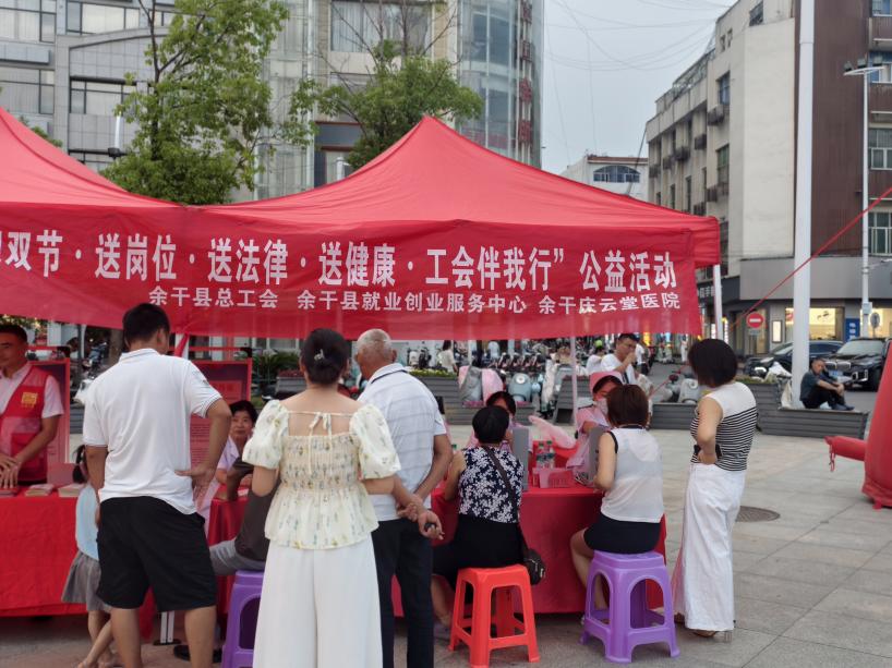 9月29日,在國慶、中秋雙節來臨之際,余干縣總工會聯合余干縣就業創業服務中心、余干慶云堂醫院,于琵琶湖工會驛站旁西廣場舉辦“送崗位?送法律?送健康?工會伴我行”公益活動。活動以“暖心服務大禮包”形式,為職工群眾送上節日祝福,吸引近200名職工參與,現場氛圍熱烈而溫馨。