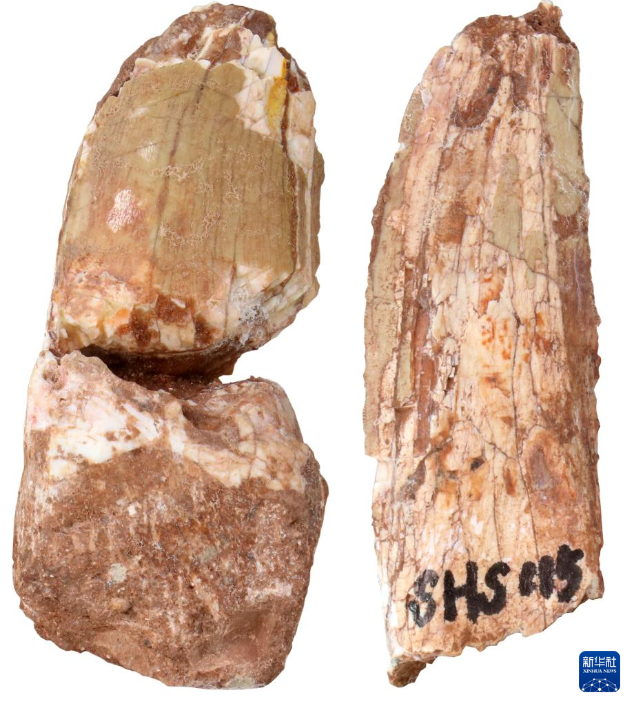 2024年5月14日,研究人員展示經過清理修復的暴龍超科牙齒化石。