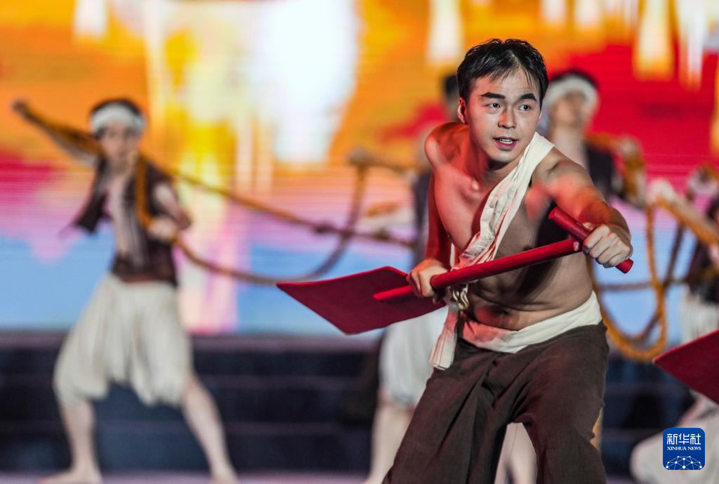 演員在貴州省貴安新區云漫湖公園進行文藝表演(7月25日攝)。