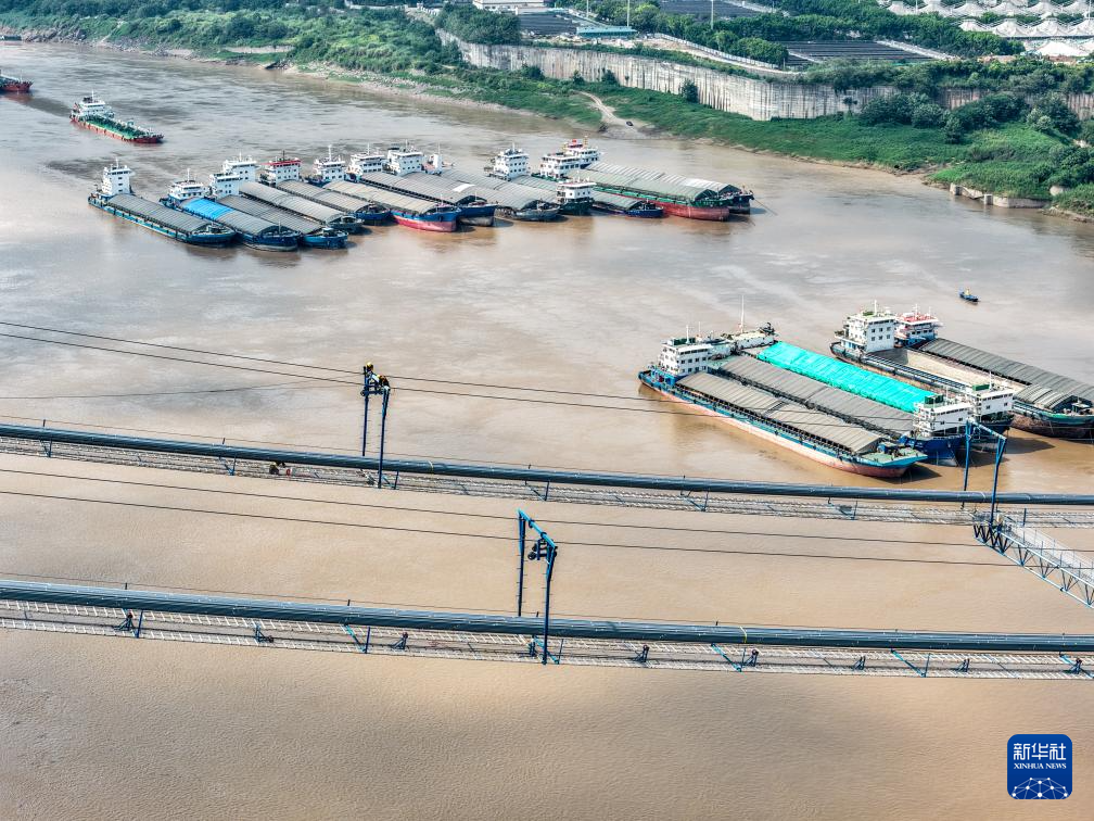 這是7月30日拍攝的重慶黃桷沱長江大橋主纜架設(shè)作業(yè)現(xiàn)場(無人機照片)。